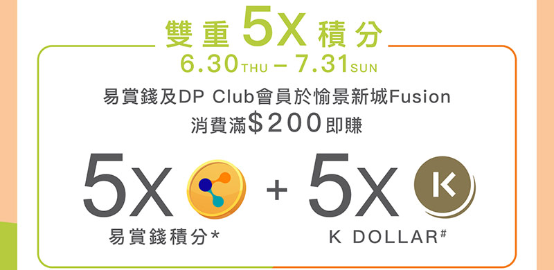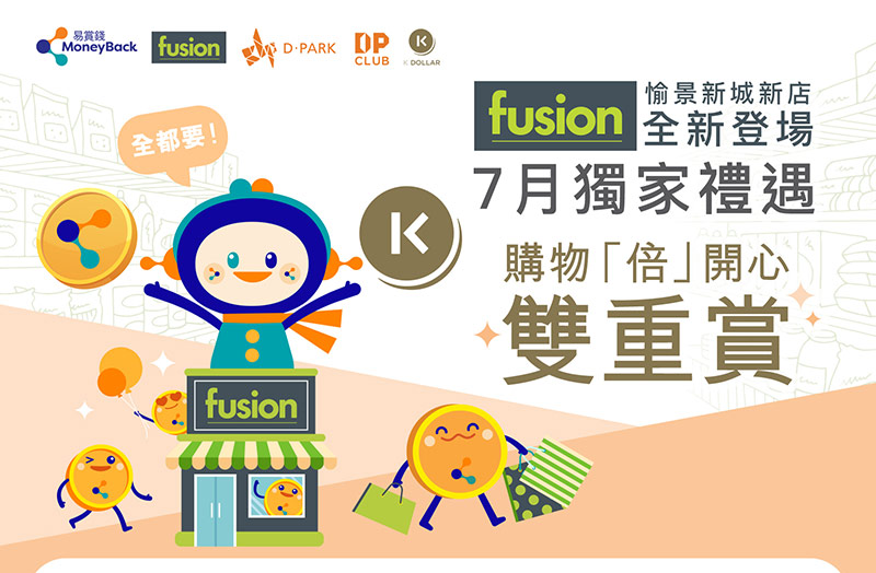 愉景新城全新Fusion現已盛大開幕🌟易賞錢積分限時聯乘 K Dollar 讓您盡享新店開張優惠同時賺盡兩邊5倍積分!